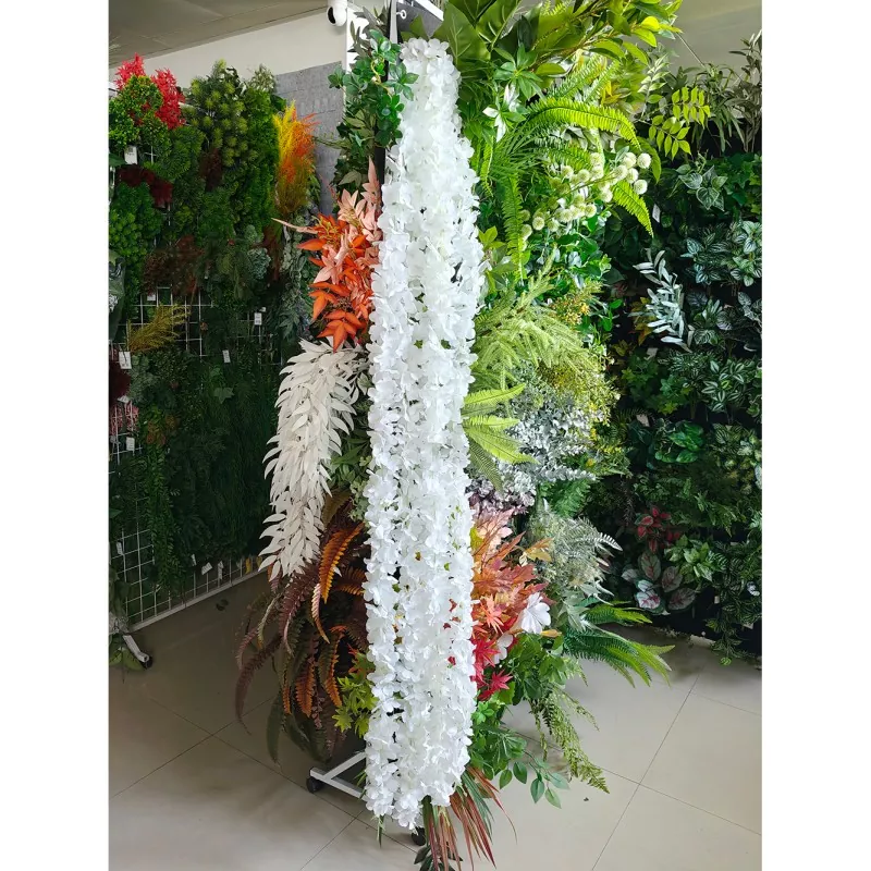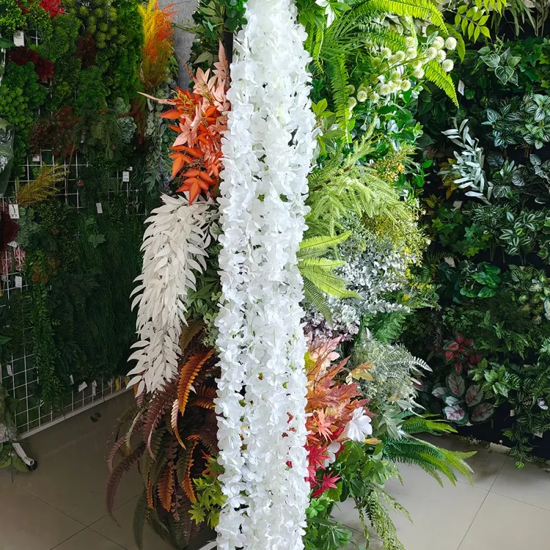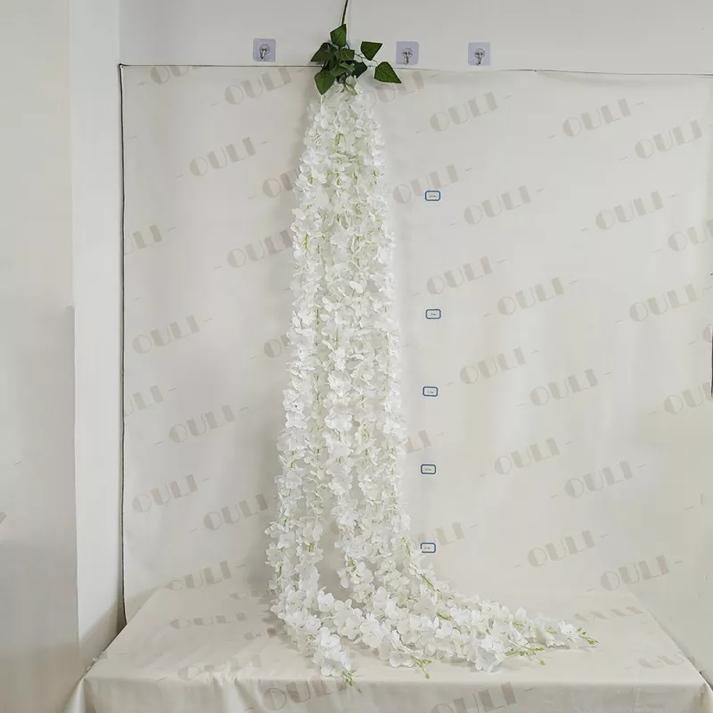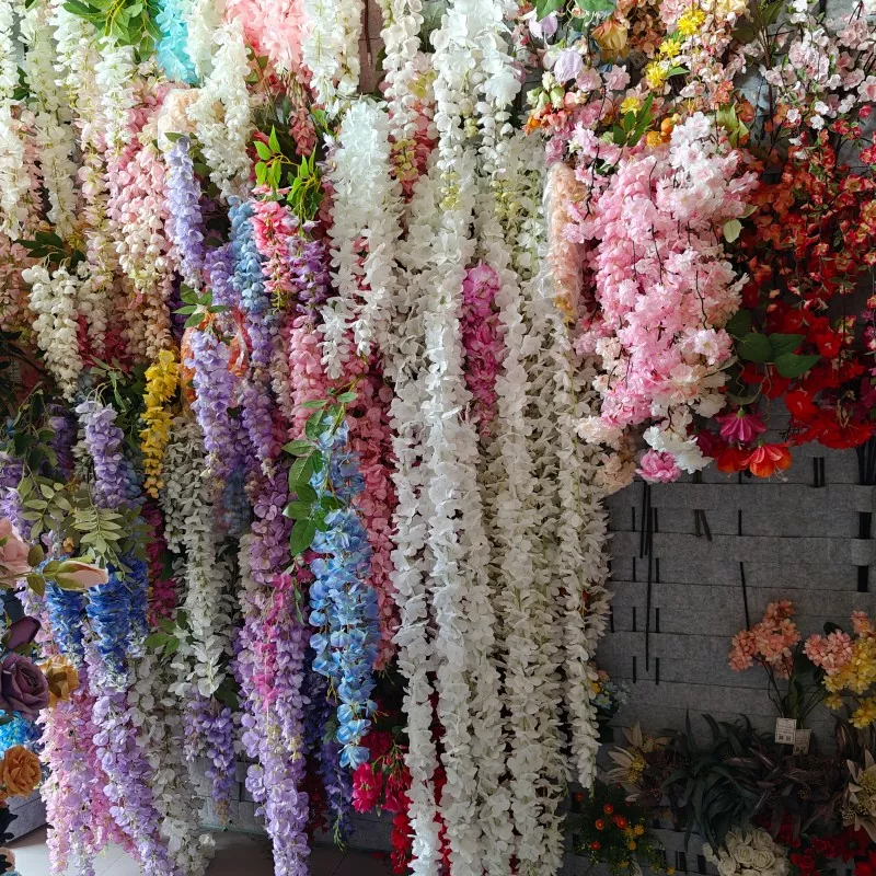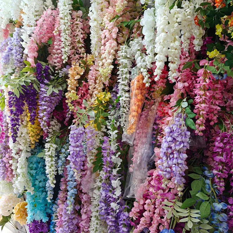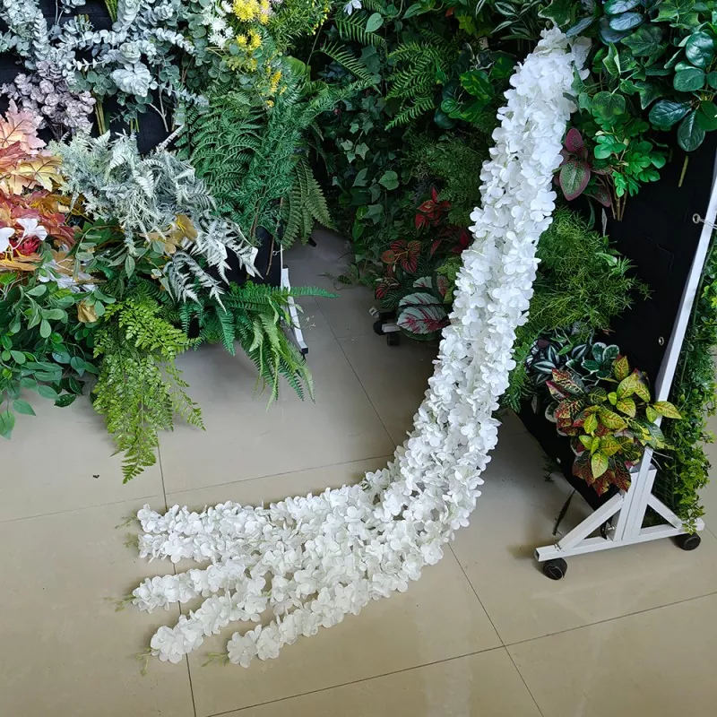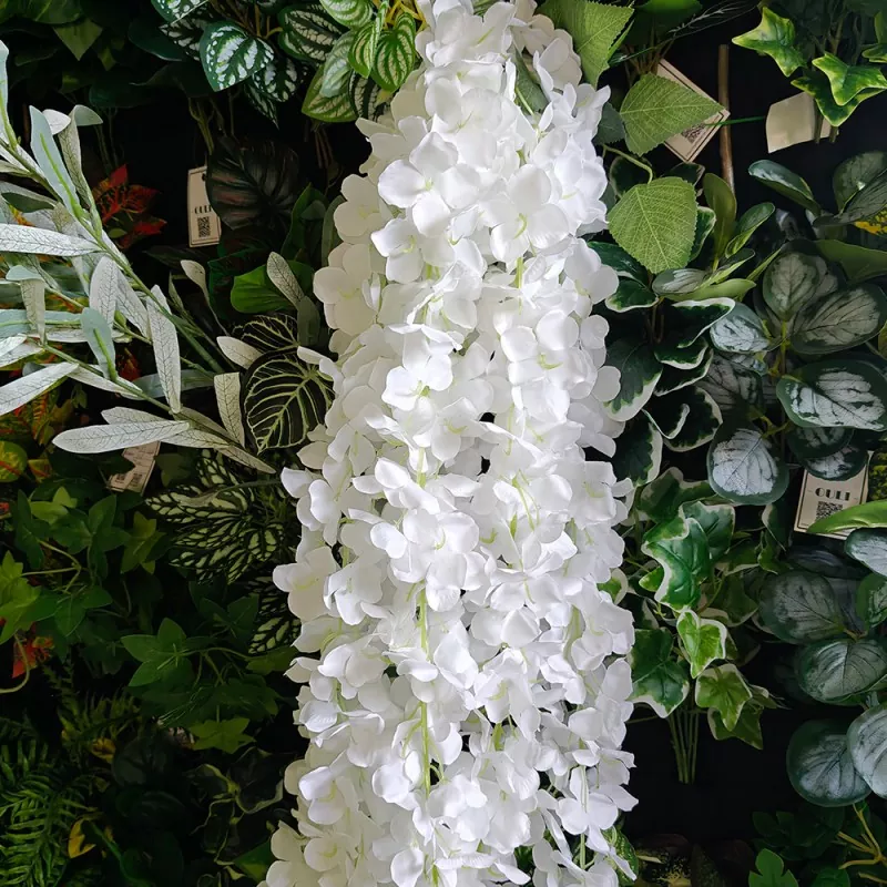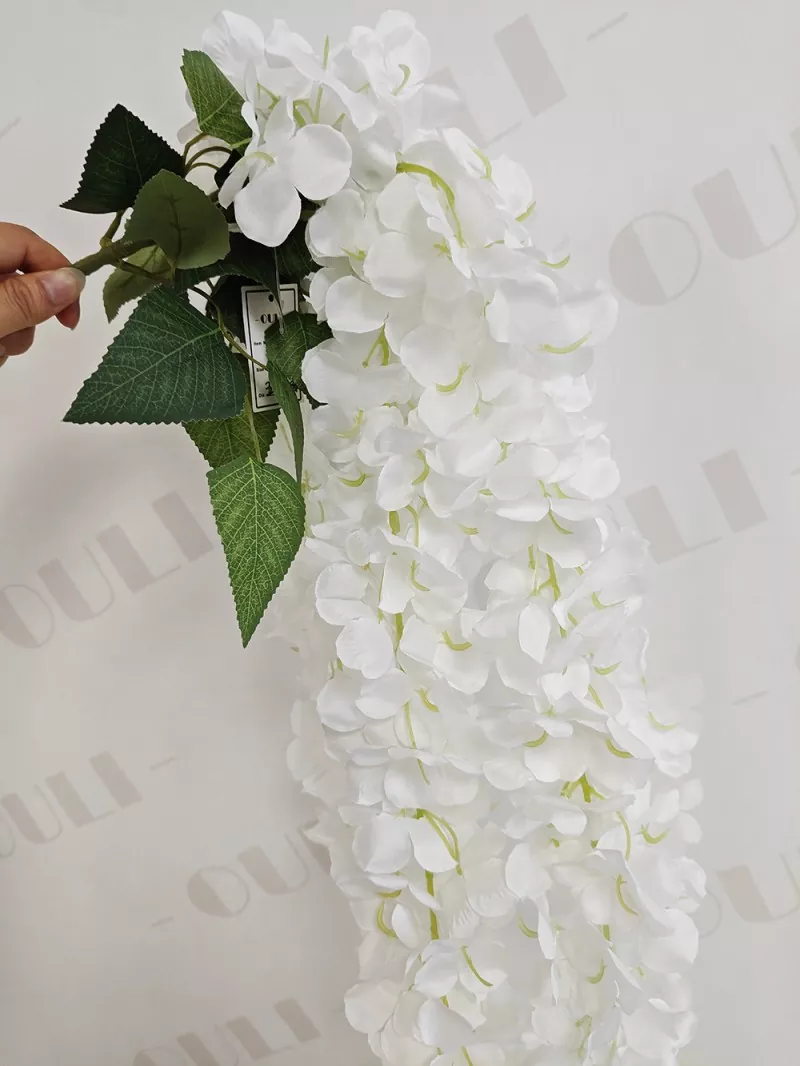 প্রতিটি ঝুলন্ত উইস্টারিয়া কৃত্রিম ফুলের পাঁচটি উইস্টারিয়া লতা রয়েছে, এটি সজ্জার ঘনত্বকে উল্লেখযোগ্যভাবে বাড়িয়ে তোলে।